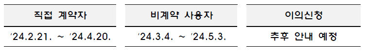 1. 직접 계약자 : 2024년 2월 21일 ~ 2024년 4월 20일까지