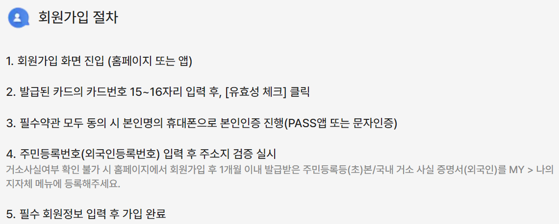 ✅ 이제, 실물카드(앱카드)가 도착하면 K패스 홈페이지로 돌아가서 회원가입을 완료해 주시면 모든 절차가 완료됩니다.